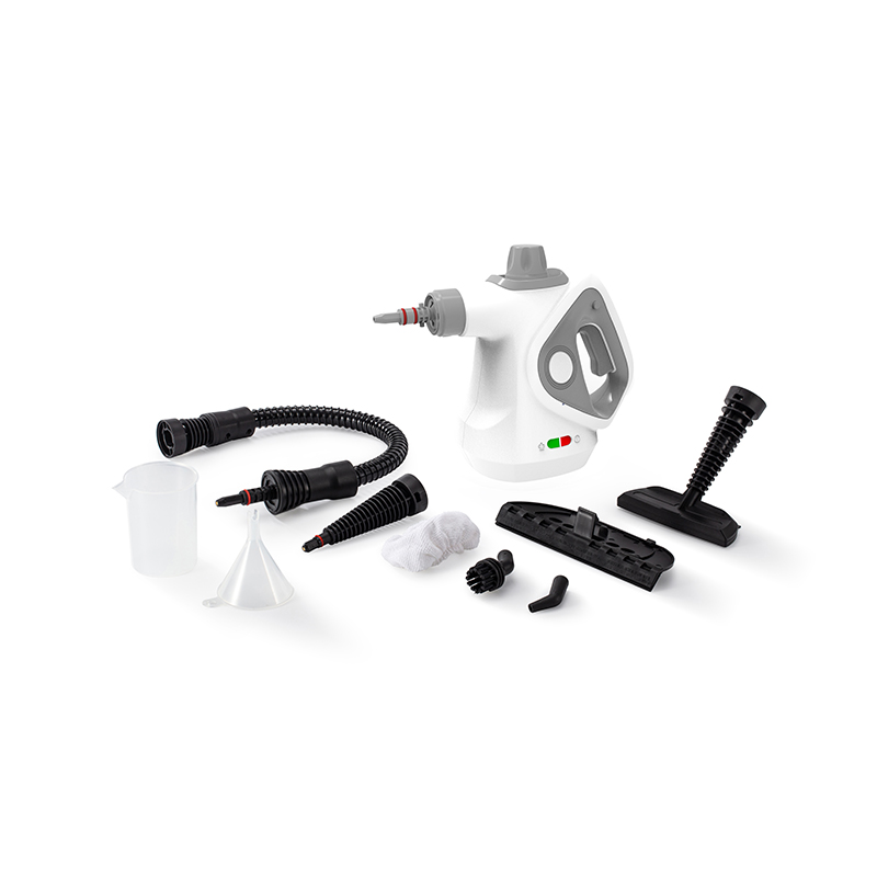 کیت بخار شوی دستی TM-377 با 9 لوازم جانبی استاندارد از جمله نازل اسپری بلند، نازل خم شده، نازل برس گرد و شلنگ کششی ارائه می شود که آن را برای تمیز کردن سطوح مختلف مانند کف، پنجره ها، میز آشپزخانه و روکش پارچه ای مناسب می کند. سیم برق 3 متری انعطاف پذیری را برای مناطق بزرگتر ارائه می دهد، در حالی که طراحی سبک و جمع و جور آن مانور و نگهداری آن را آسان می کند.